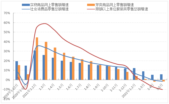 图2 2022年1-5月国内市场服装销售增速情况