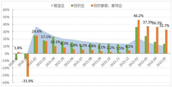 图1 2022年1-5月服装行业生产增速情况