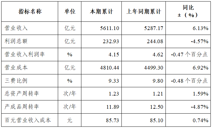 表1 2022年1-5月服装行业主要效益指标情况