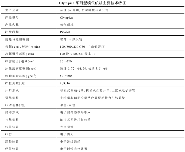 Olympica型喷气织机是必佳乐(苏州)纺织机械有限公司新推出且适合中国国情的新型喷气织机。