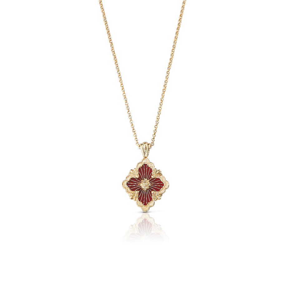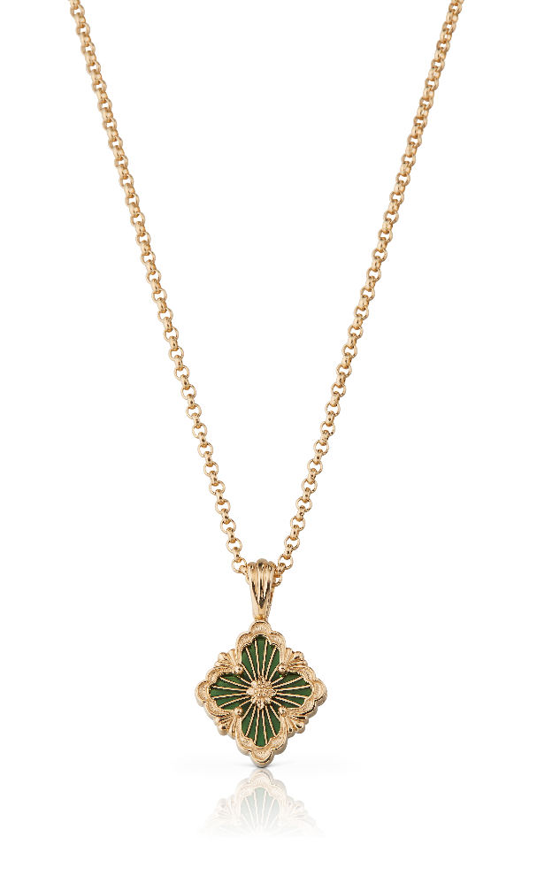 Opera Tulle保持了布契拉提珠宝特有的奢华与柔美,其花卉图案来源于布契拉提的品牌标识,以文艺复兴时期的意大利建筑为灵感,设计分别借鉴了罗马四喷泉圣卡罗教堂穹顶的轮廓、布斯卡的城堡主入口上方的玫瑰花窗、以及威尼斯总督宫柱顶的装饰图案。