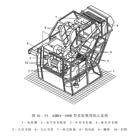 真丝面料机械柔软后整理的办法较多,可在单辊筒后整理机上轻轧或在拉幅机上轻微拉幅,也可用专用的机械柔软后整理机,如图10-32所示。