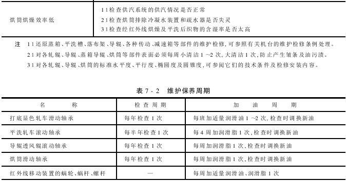 1.设备维护保养 设备的故障处理及维护保养见表7-1、表7-2。