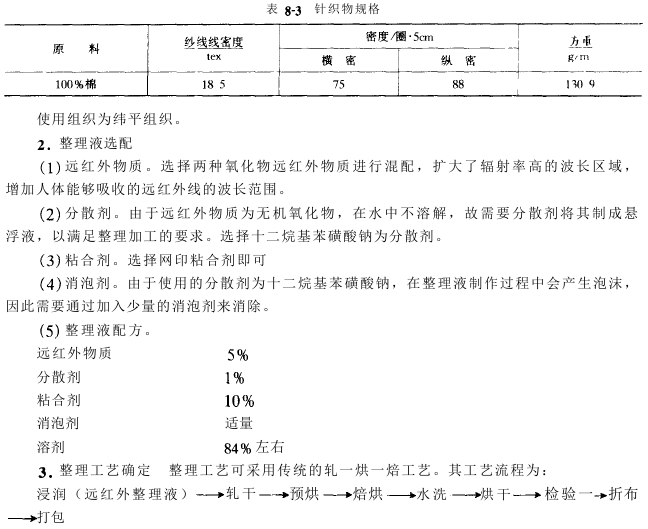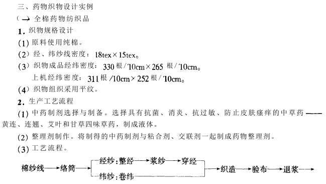 您现在的位置是:首页>阻燃面料技术 阻燃面料技术 保健织物设计实例 城南二哥2021-03-15 09:52:33阻燃面料技术657来源:阻燃布料_阻燃面料网 一、抑菌面料设计实例 (一)抑菌非织造布的设计和生产 1.生产办法及工艺流程 (1).生产办法。可采纳纺丝成网法、热轧法、水力喷刺法等工艺。 AAANHGMKJLOI87 发布的有些文章部分内容来源于互联网。如有侵权,请联系我们,会尽快删除。本文仅代表作者观点,不代表本站立场。 本文地址:https://www.china-fire-retardant.com/post/6210.html 上一篇:药物织物设计与生产工艺要点 下一篇:概 述 相关文章 涤纶阻燃面料的阻燃整理工艺 美国对中国产婴儿连体衣实施召回 印度对中国粘胶短纤纱作出反倾销肯定性终裁 Asics成为首家签署环保公约FashionPact的本企业 摩洛哥对中国机织地毯及其他纺织地面覆盖物发起反倾销调查 土耳其对中国合成长纤维织物作出反规避终裁 越南水晶针织厂获得绿色建筑认证 莫代尔纤维及其面料