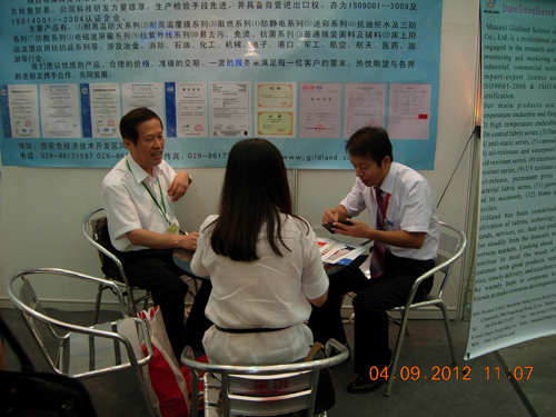 第七届上海国际防火材料技术展览会暨国际论坛由中国防火学会联合国际锑协会、德国塑料中心、欧洲防火协会、美国防火剂化学品协会组织国内外企业参展。本次 展览会展示了国内外新技术及产品,吸引了近四万多名专业人士到会参观,展会共展出面积12000多平方米,集中展示了欧美等国家及中国台湾、香港、内地 的防火剂、防火材料、防火布料品及相关产品。科技有限公司作为专业的功能面料布料供应商,多年来一直关注国内外新布料科技的进展动态。本次展 会主要展出耐高温防火系列、防火系列、电磁波屏蔽系列、抗紫外线系列、去静电系列等5大系列近100个产品。在展示产品宣传企业的同时,通过和国内外专业 人士的交流学习,为公司在产品开发及市场开拓方面积存了更多的经验和渠道,也为公司的长远进展奠定了坚实的基础。