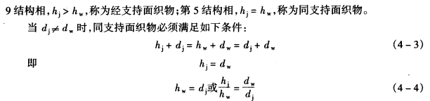 这样的结构相,定义为0(零)结构相。在这种条件下的布料切面图如图4—7所示。布料的几何结构相不同或支持面不同时,其性能和风格不同。在许多传统的面料中,对应于面料的风格特征,都具有相应的几何结构相。例如,府绸或卡其等布料,都是经纱线支数持面,必须具有较高的几何结构相;麻纱、横贡缎与拉绒本色棉布,都是纬纱线支数持面,必须具有较低的几何结构相;各类平布、涤棉布料与胶管帆布类布料,经、纬纱在面料的使用过程中,同时承受外力的作用,都需要构成同支持面的面料。因此,这些面料的几何结构相,普通都处于第5结构相或者,0结构相附近。